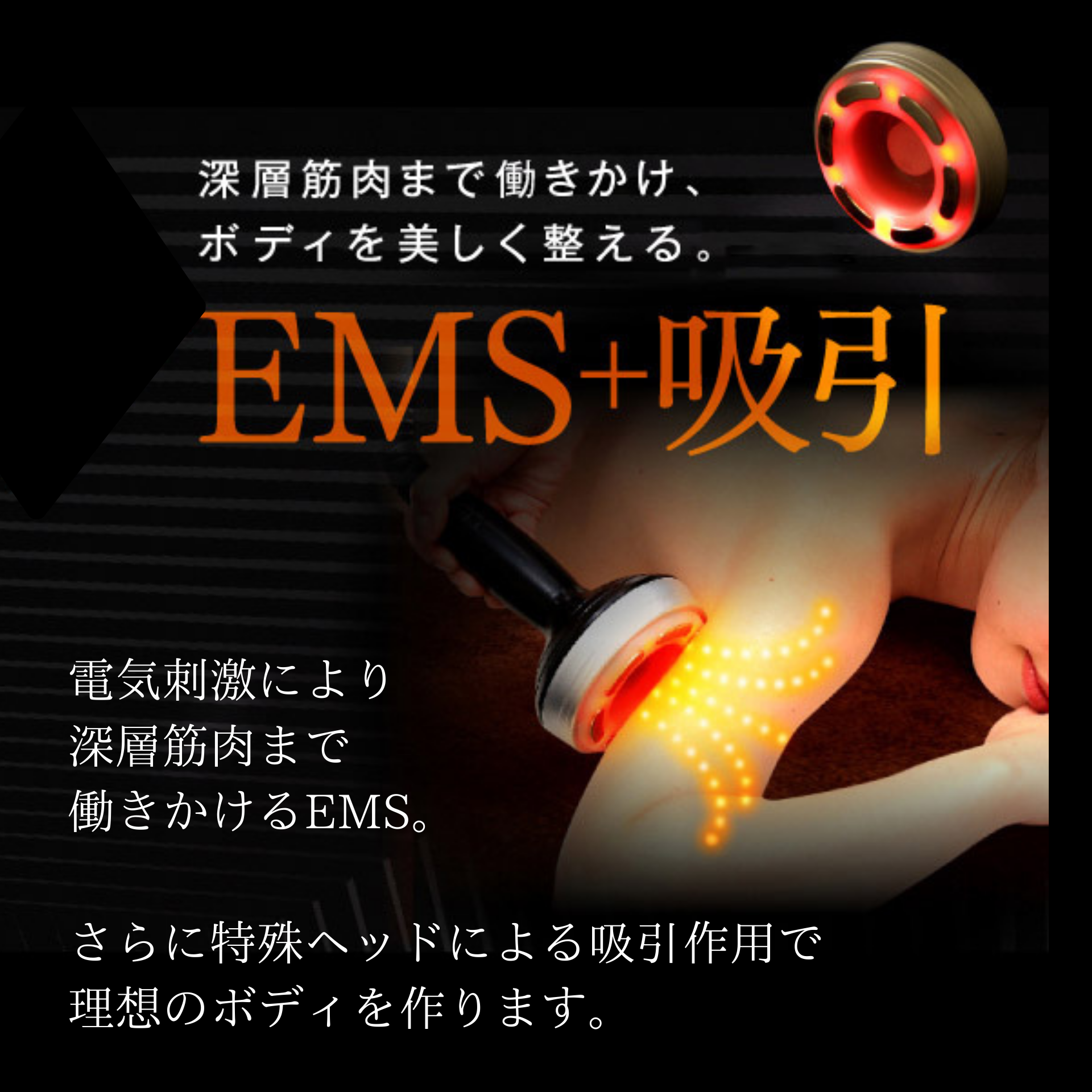 深層筋肉に働きかけ基礎代謝を上げるEMSと、特殊ヘッドによる吸引作用でセルライト脂肪を同時に揉み解します。