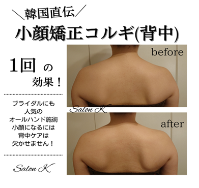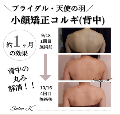 ブライダル前1か月の結果です。背中の丸みがきつかったので背中多めに施術。